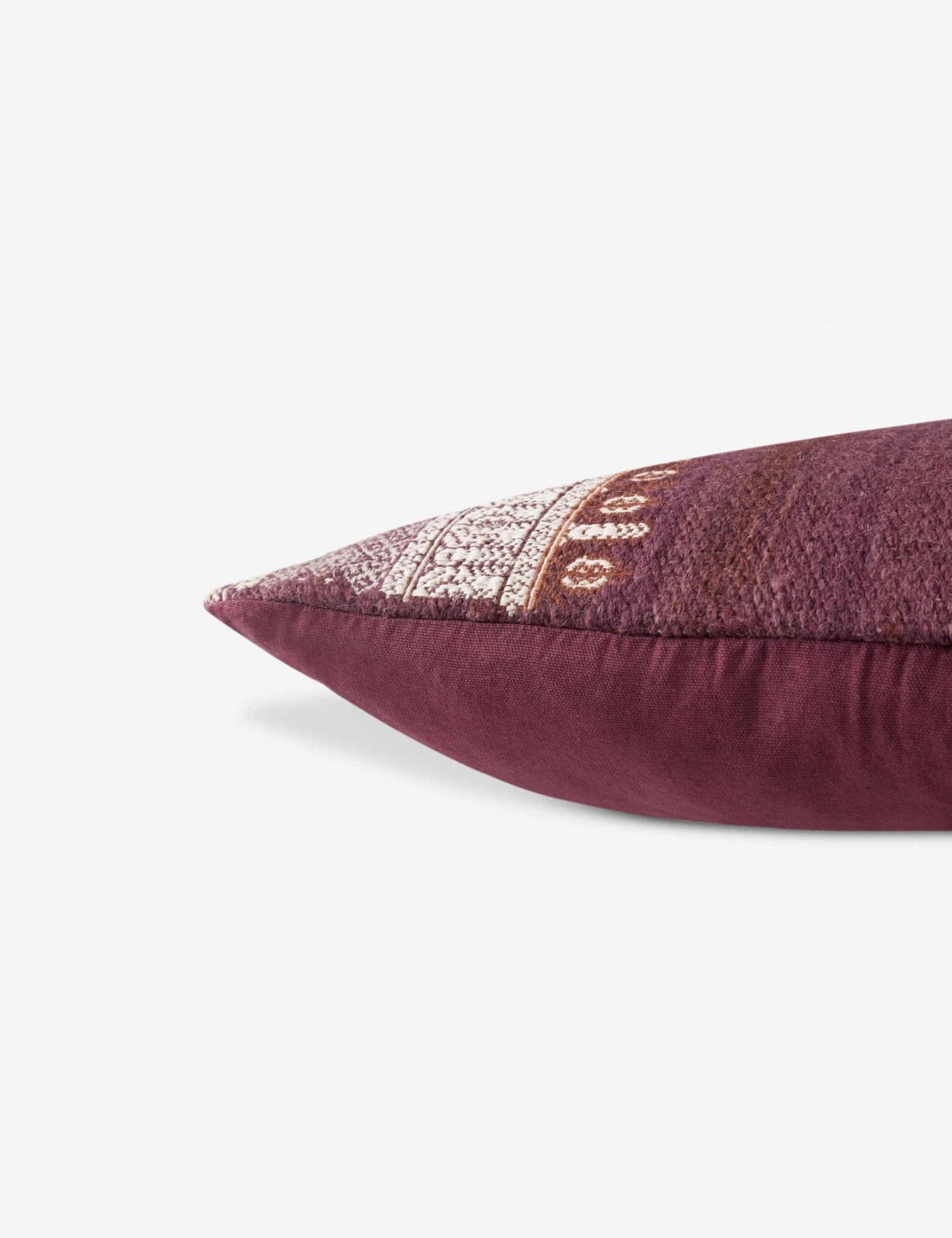 Mix and match this collection of decorative pillows, each featuring an arabesque pattern on a solid woven cotton front, in your bedroom or living space. In a deep shade of purple, this throw pillow adds a moody, refined touch to lighter upholstered furniture.