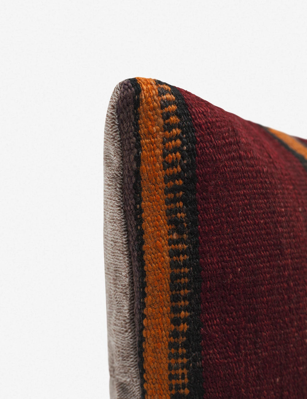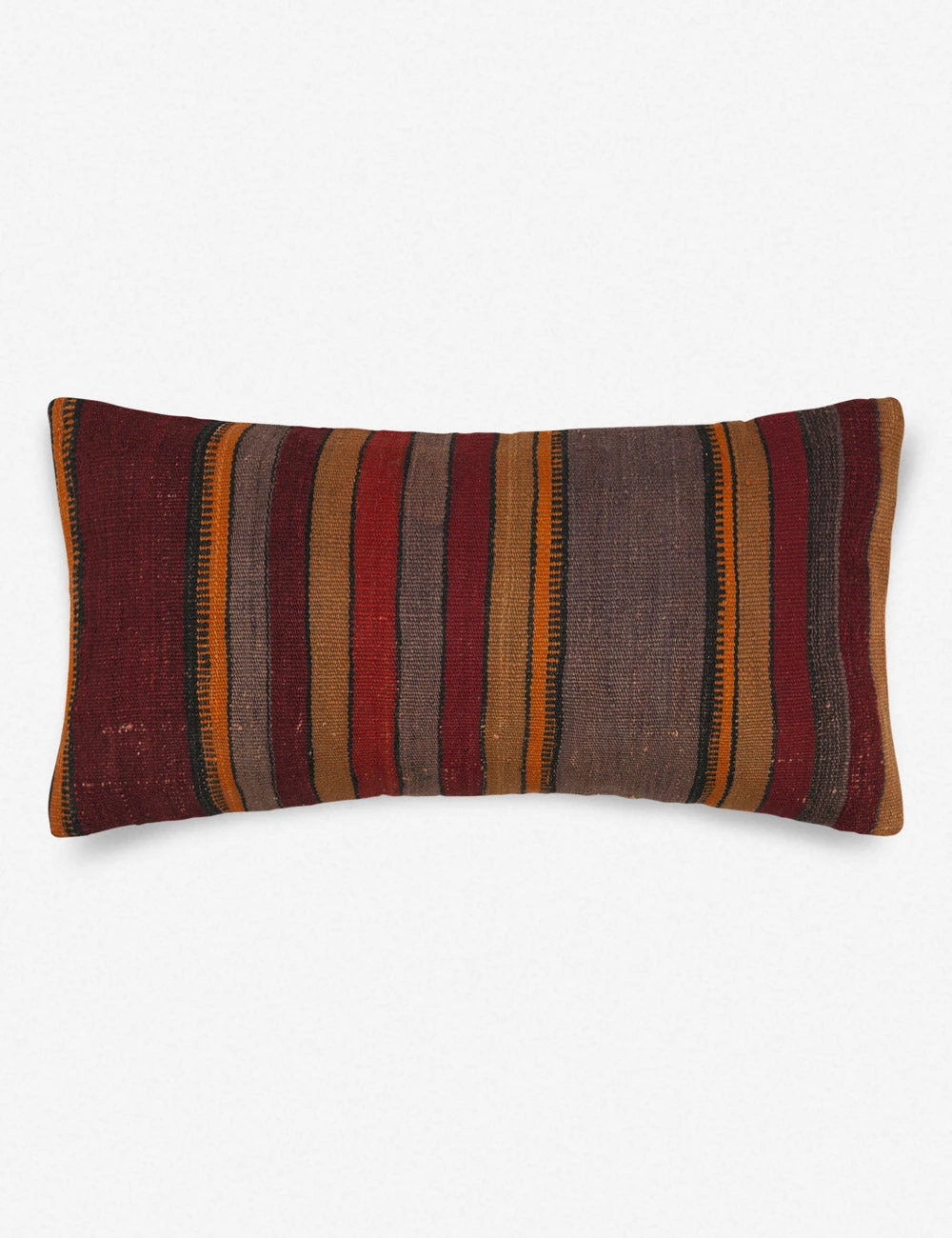 A vintage decorative pillow instantly adds warmth, stunning detail, and natural striations in color. Handcrafted from vintage wool kilims, these Turkish throw pillows are incredible layering pieces. Richly textured and full of pattern, this lumbar cushion feels like a discovery from far-flung travels.