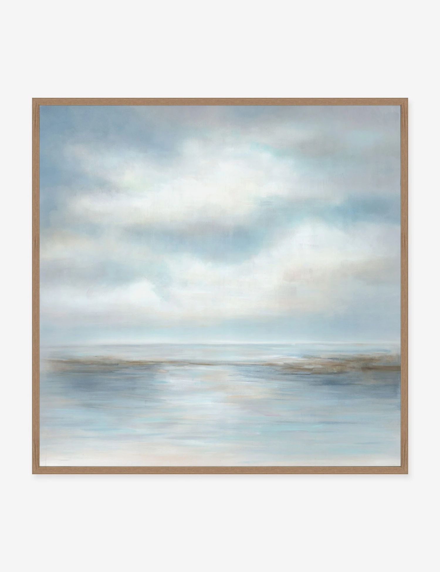 Bring a calming focal point to the room with this large-scale wall painting. Billowy clouds meet a serene sea on a soft but definite horizon, inspiring tranquility. This original artwork from artist D’Alessandro Léon brings a one-of-a-kind feature to your wall decor.
