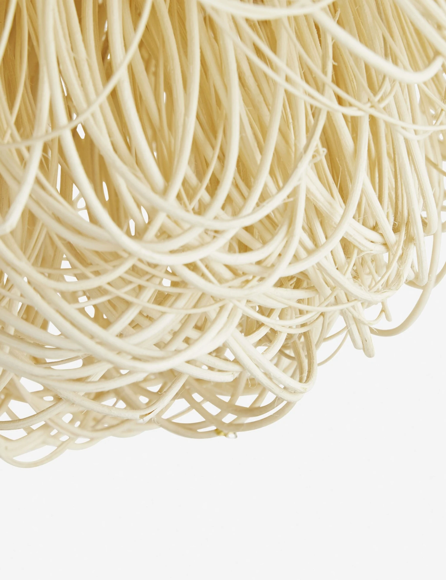 The Finley chandelier offers a provocative statement light with its eye-catching design. Bleached rattan is looped in an organic pattern creating a sculptural luminescent quality for your space. We love this modern chandelier as a tone-setting signature for a dining room or lounge.
