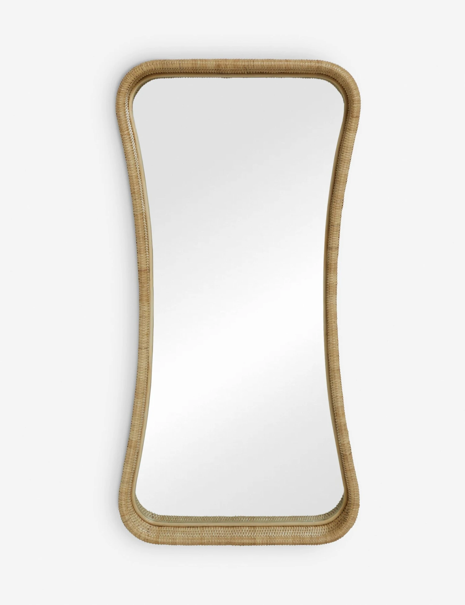 Wicker meets modern in this stylish floor mirror. The flowing lines and light finish offer a soft presence in the room set for versatile style appeal. This floor mirror is set to transform your space with its bright and elevating charm.