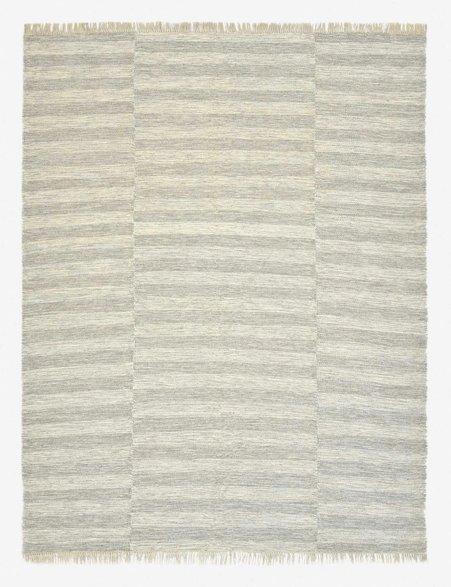 An offset stripe design in a tonal, heathered blue-gray color seamlessly combine to create this flatweave floor rug. Its wool-cotton blend construction makes this area rug durable and low-maintenance—great for high-traffic rooms, entryways, hallways, and in homes with kids and pets.