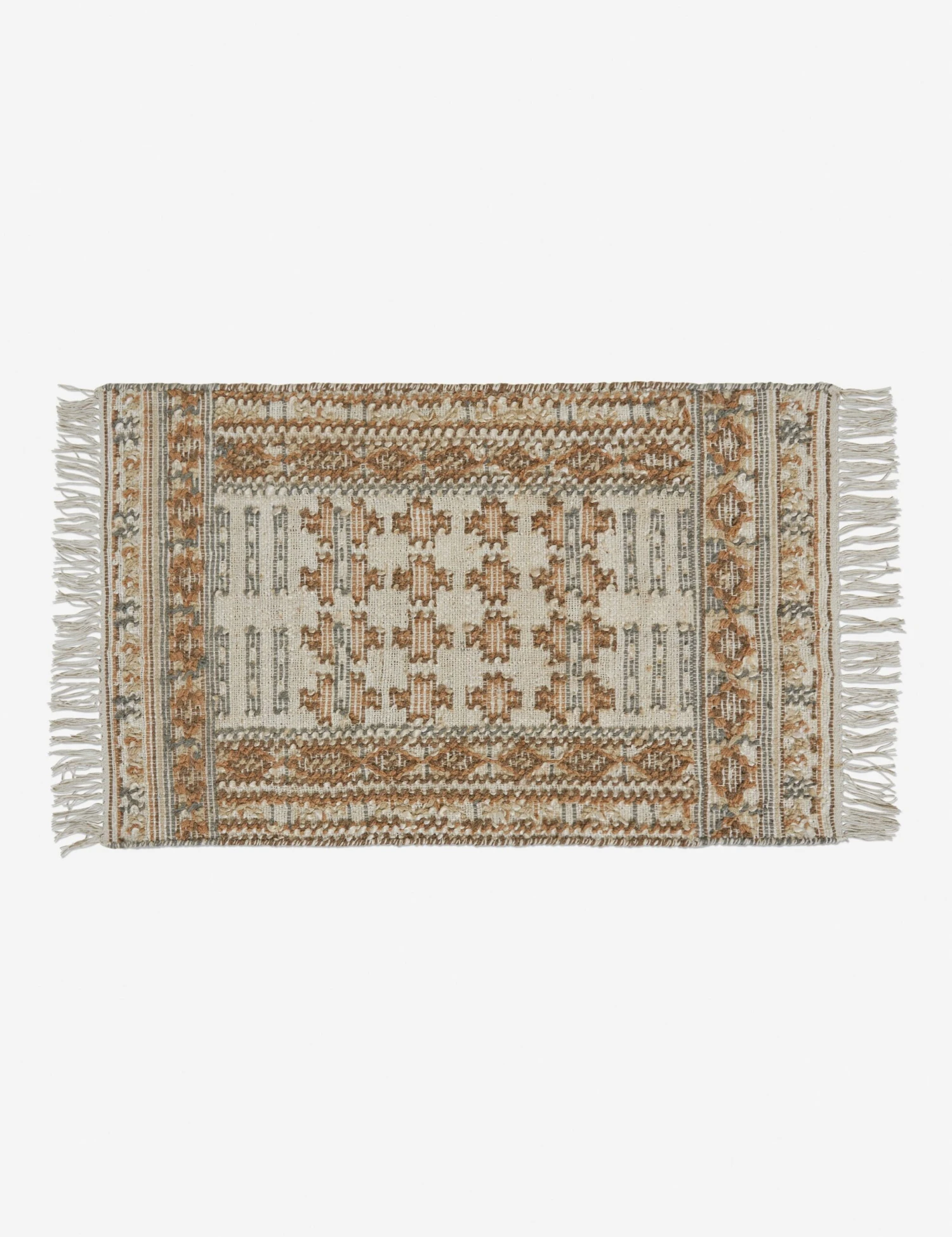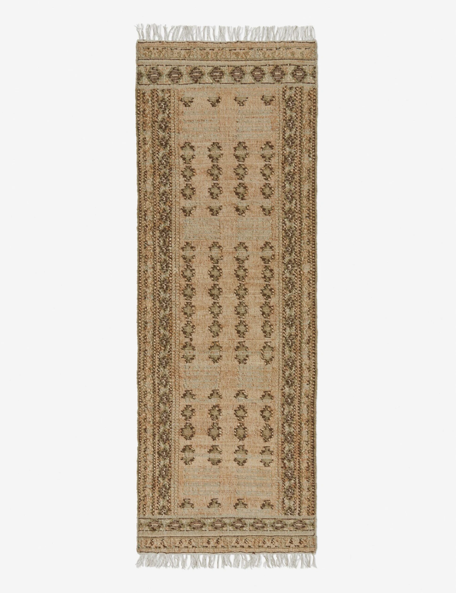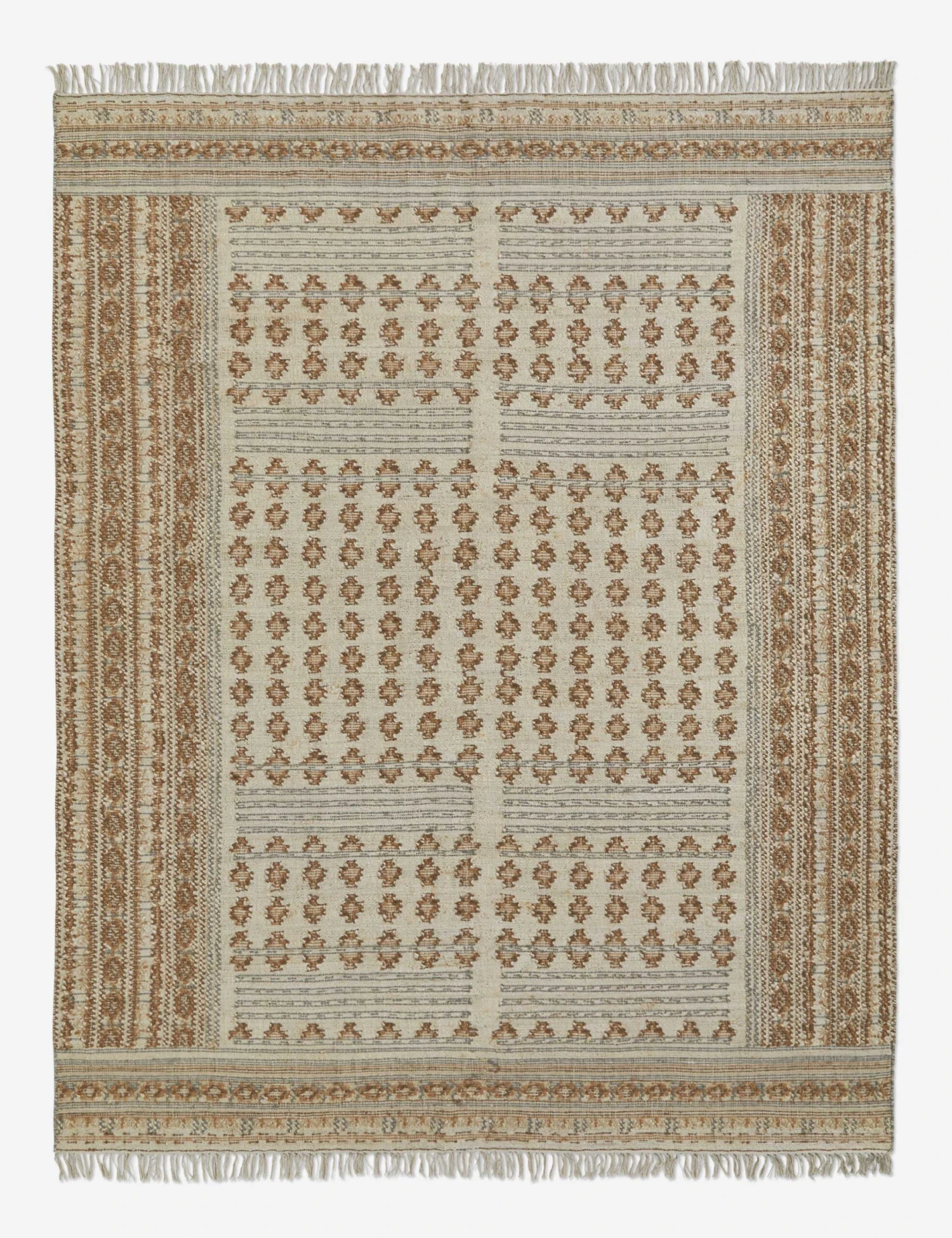 Revel in the artisanry and traditional motif of the Keziah rug. A dynamic blend of jute and wool with a touch of cotton brings natural texture appeal to this timeless floor rug design. The low pile and durable materiality of this jute flatweave are ideal for a heavily traveled hallway or casual lounge.