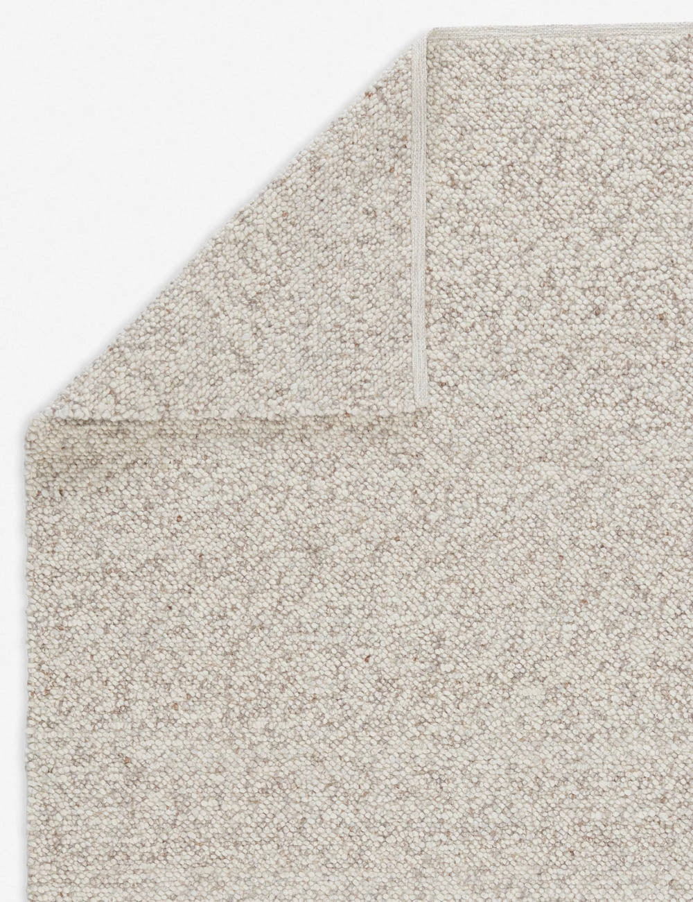 Handwoven of wool and jute, this area rug features a texture-rich boucle design with neutral hues of ivory, light gray, and tan. This grounding rug is perfect for layering with other textural neutrals and adding to a bedroom or living space.