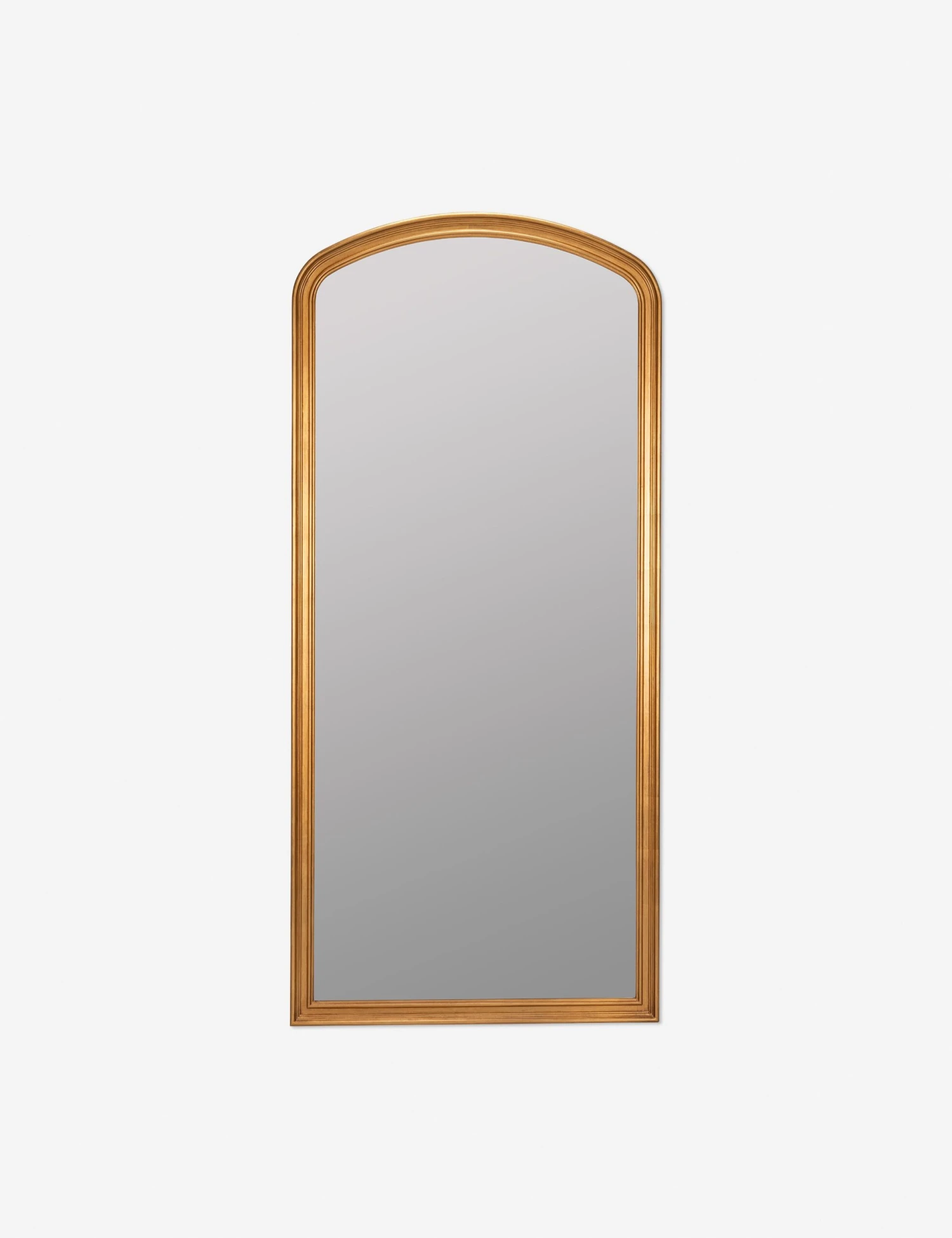 Traditional notes inspire a timeless elegance in this antique gold framed mirror. The gently arched shape and trim detailing offer a transitional full length mirror that catches the eye with its understated profile. Lean or mount this full length mirror in your bedroom, bath, or lounge for an elevated finish in the room.
