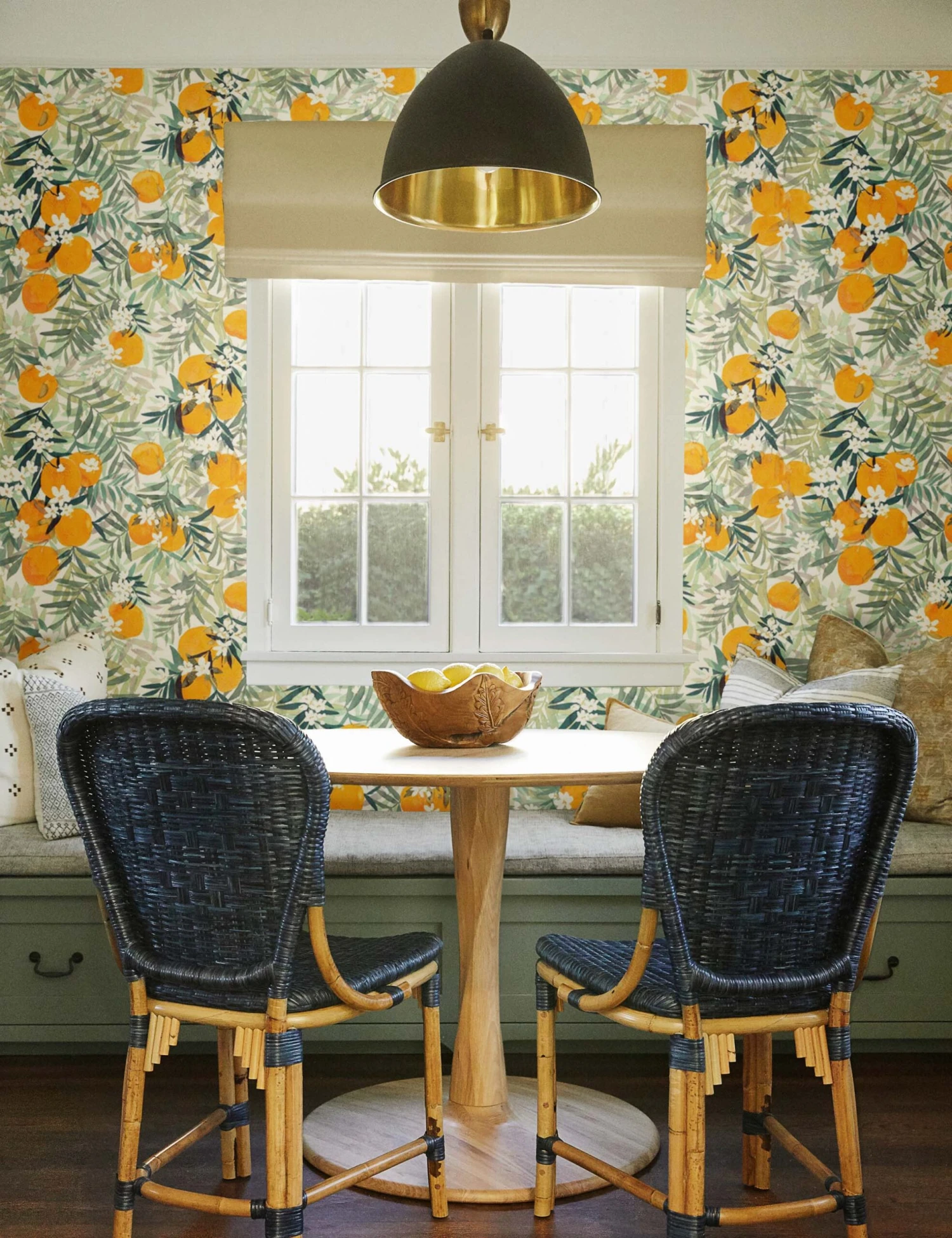 Soft watercolors of lacy leaves are the backdrop for the saturated blooms and pops of orange fruit in this statement-making removable wallpaper. Instantly transform your walls with peel + stick wallpaper—it’s easy to install and provides a mess- and residue-free removal.
