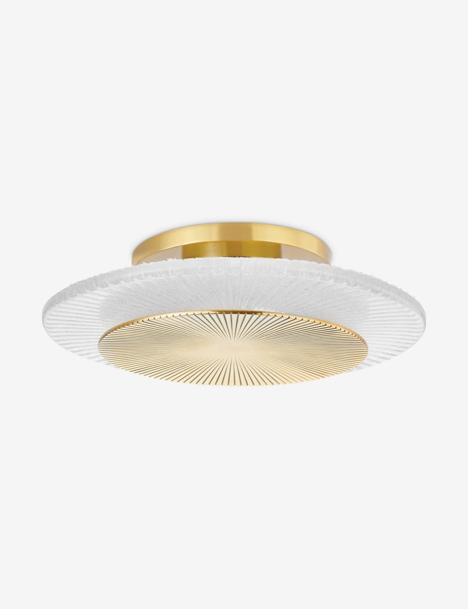 The Pellard sconce brings brilliance to lighting. The circular design features a rippled metal disk set against piastra ice glass in a visually stunning display. We love this sconce light for its warm sophistication, whether styled alone or in multiples.