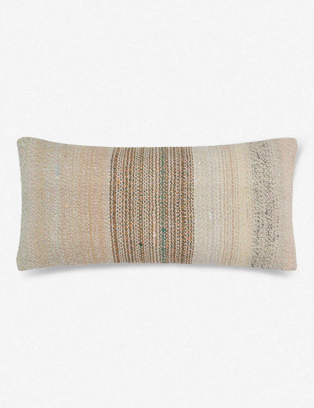 A vintage decorative pillow instantly adds warmth, stunning detail, and natural striations in color. Handcrafted from vintage wool kilims, these Turkish throw pillows are incredible layering pieces. Richly textured and full of pattern, this lumbar cushion feels like a discovery from far-flung travels.