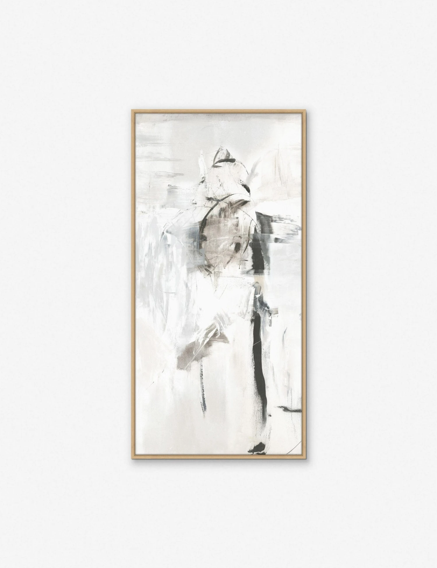 While this abstract piece maintains a neutral palette, the variation in the size and pressure of the brushstrokes adds structure and texture to the artwork. The Shauna natural wall art is perfect for modern and minimalistic spaces.