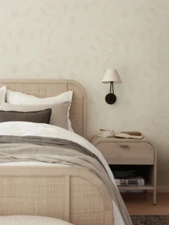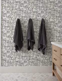 Modern tones and a linear pattern offer fresh graphic appeal in this home wallpaper design. Update your entryway or style an accent paper wall with this chic and textural grasscloth wallpaper.