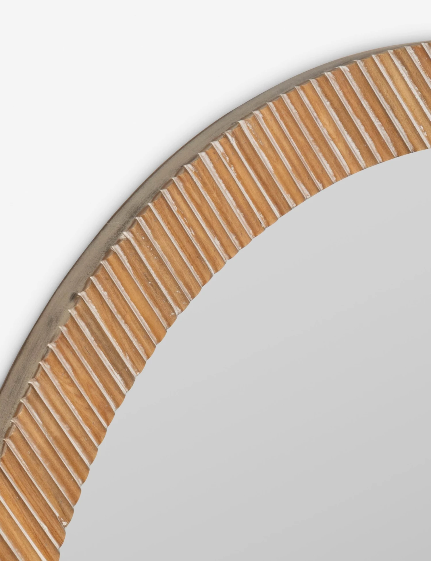 Viola offers a classic round mirror design featuring subtle but eye-catching geometric detailing around the frame. The natural finish fashions this decorative mirror with a versatile look and modern tone to finish any entryway or living space in bright splendor.